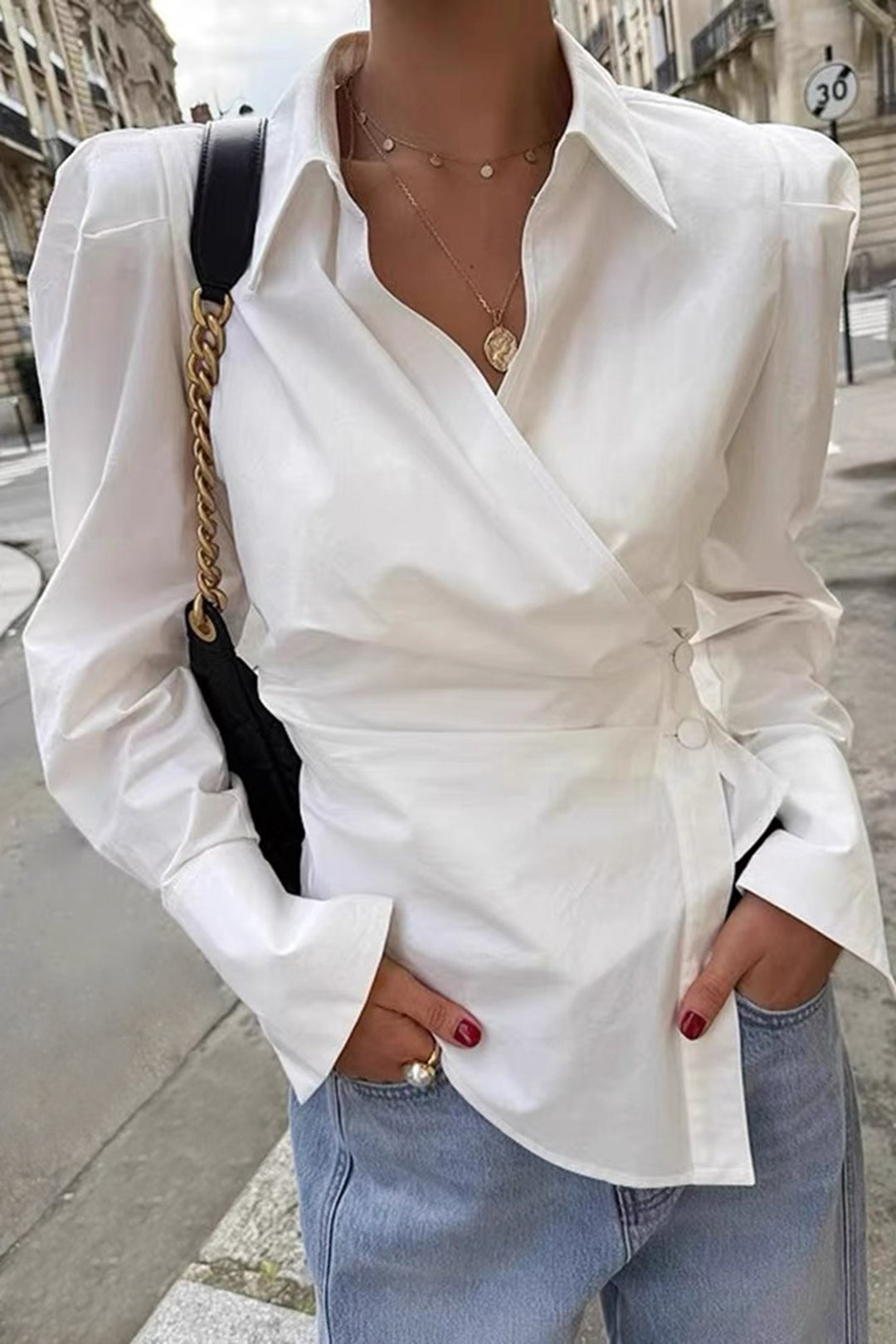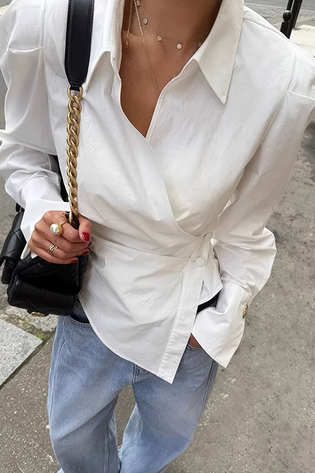 Halenka s dlouhým rukávem, asymetrickým zadním dílem a výstřihem do V